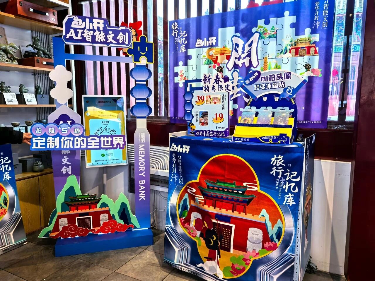 近日,漫步开封各景区,“AI智能文创”体验点正在开封多个景点悄然铺设,成为古都文化旅游与前沿科技融合的新标志。打破了传统旅游纪念品的固有模式,将人工智能、增强现实等技术与开封深厚的宋文化底蕴深度融合。