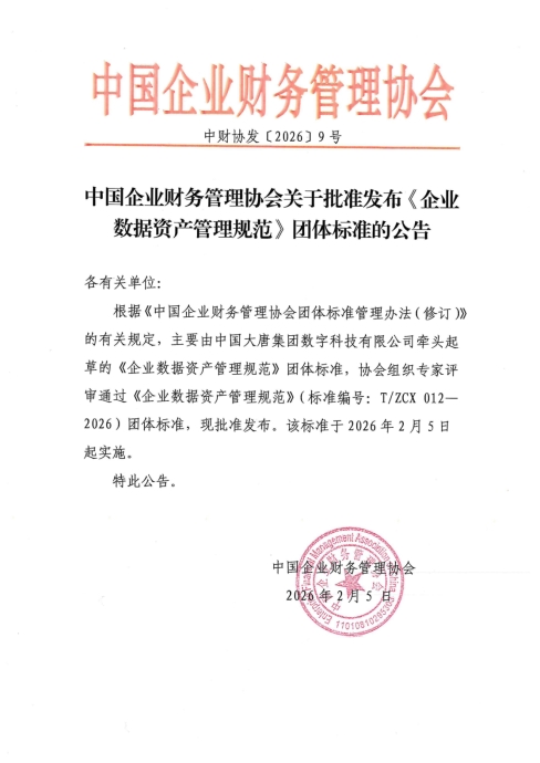 2026年2月,中国企业财务管理协会正式发布《企业数据资产管理规范》团体标准,此项国家级团体标准的出台,为企业数据资产管理提供了统一的操作规范与实施依据,明确了企业开展数据资产管理工作的核心方向,助力行业实现“标准先行、规范落地、价值赋能”的良性发展。