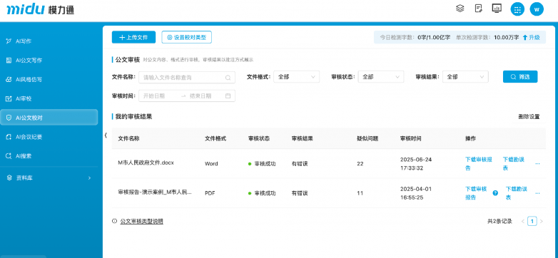 (模力通AI公文校对示意)
