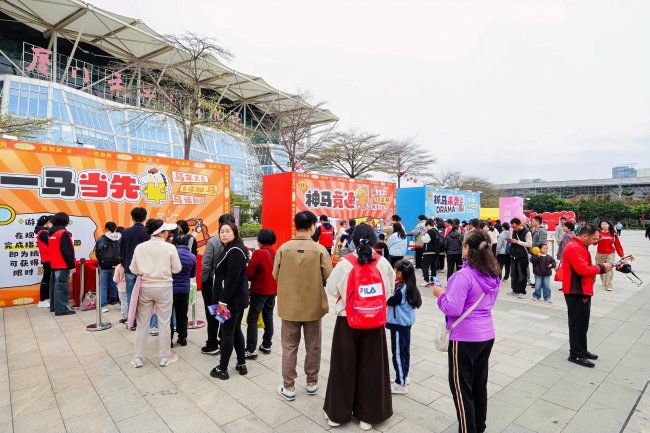 集市期间,“山海奇遇·潮玩元夕”第九届厦门市职工元宵嘉年华同步上演,打造文化与消费深度融合的节日场景。原创灯谜长廊吸引众多职工驻足竞猜,巨型木偶巡游、民俗表演与文艺演出轮番登场,点亮夜间活动氛围。围绕马年主题设置的手作工坊、互动游戏、集章打卡等环节,吸引亲子家庭、年轻职工积极参与,进一步丰富职工文化生活。