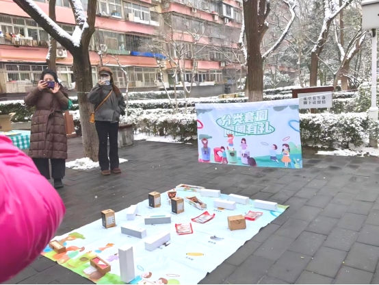 活动当天,志愿者们齐聚滨河公园北门,整装待发。此次活动将趣味互动与志愿实践相结合,让垃圾分类知识在轻松的氛围中深入人心。活动现场设置了猜谜和垃圾分类套圈两大趣味互动环节,谜语内容紧扣垃圾分类知识,志愿者和居民们踊跃参与,认真思考谜底,答对谜底的参与者可获得专属手环,凭手环兑换套圈参与套圈游戏。套圈区域的垫子上张贴着各类垃圾图片,纪念品摆放其上,参与者套中后需准确说出对应垃圾的分类类别,回答正确即可领取精美礼品。趣味十足的互动形式,让大家在玩乐中巩固了垃圾分类知识,有效调动了居民参与垃圾分类的积极性和主动性。