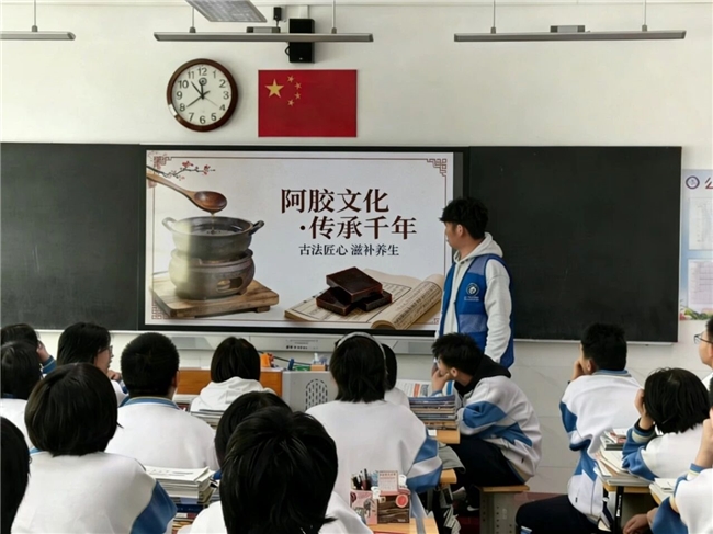 为深化学生对中医药传统文化的认知,助力阿胶知识普及传播,3月5日,聊城大学药学与食品工程学院 “食韵传情,科创赋能”志愿服务队于聊城市东阿县中国阿胶博物馆、滨州市惠民县第一中学举办以“胶韵传承,科创赋能”为主题的社会实践活动。