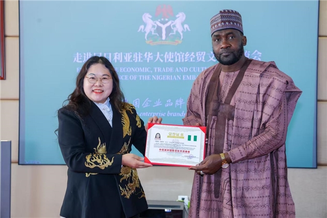 活动现场,杨晓琴董事长凭借其在文化交流与经贸合作领域的卓越贡献,荣获尼日利亚驻华大使馆颁发的“中尼友好国际文化交流使者”证书。同时,广州丝路花语模特经纪有限公司也被授予尼日利亚驻华大使馆文化艺术指定单位称号。这一系列荣誉,是对杨晓琴及其团队长期以来致力于推动中尼文化经贸交流的高度认可与肯定。