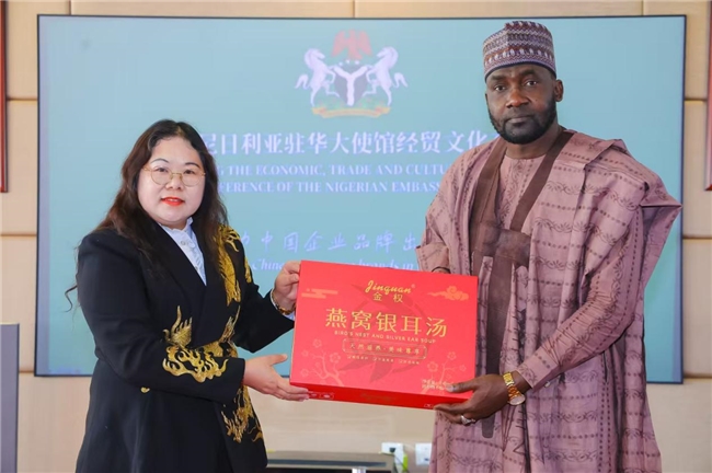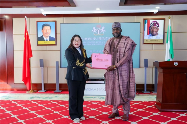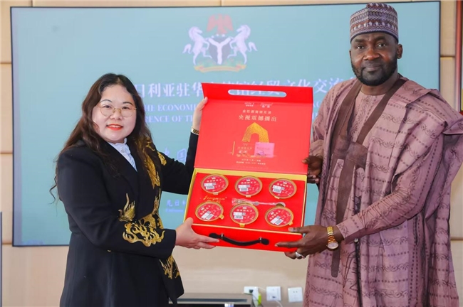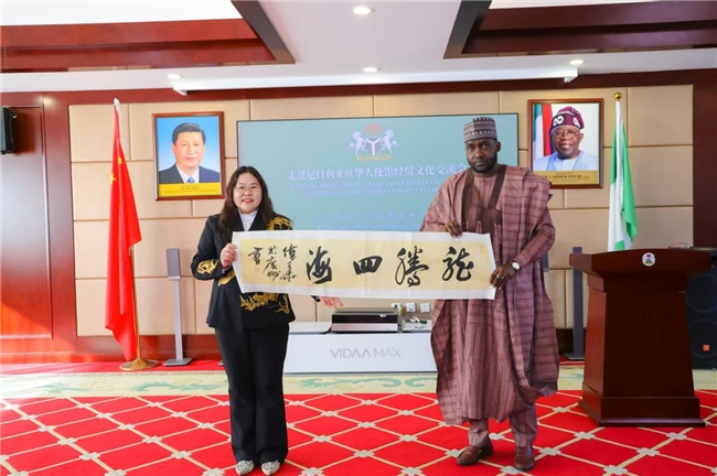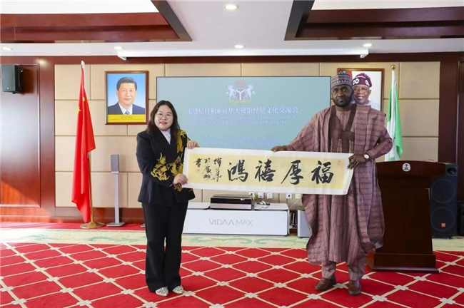 值得一提的是,杨晓琴女士作为2026年1月《中国经贸》封面人物,还向尼日利亚驻华大使赠送了何伟华老师题写的书画作品“龙腾四海”,寓意着中尼合作如蛟龙腾飞,前景广阔。同时表达了将中国好产品推向尼日利亚及世界各地的坚定决心。