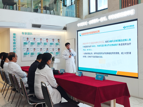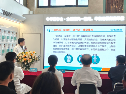 南京风康医院痛风科主任、美国风湿病学会(ACR)国际会员、"全国痛风一张网·难治性痛风'十五五'攻坚医疗专家组"成员王凯军主任,作了题为《新技术在痛风治疗中的应用》的专题报告。详细介绍了医院在痛风临床治疗中取得的突破性进展。