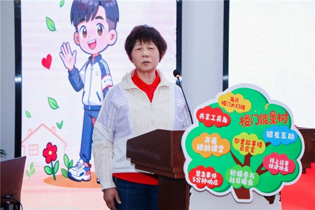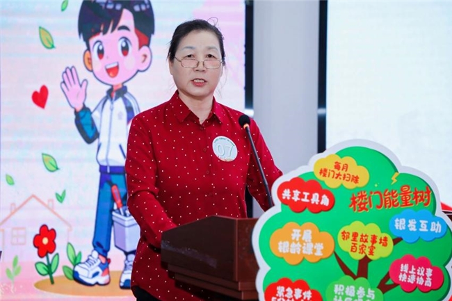 街道党工委委员、办事处副主任赵玲萍作开场讲话,她表示,楼门长是社区的“眼睛”“耳朵”“手脚”,大家用脚步丈量责任,用真心换得信任,为基层治理筑牢了根基。街道也将持续为楼门长队伍建设搭舞台、做保障,让每一位楼门长在奉献中收获成长,在付出中感受温暖。