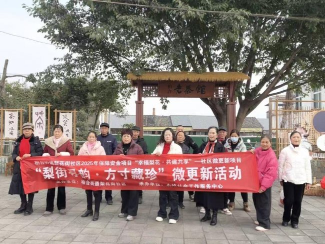 为活化柏合老场镇文化记忆,激活社区空间活力,筑牢“幸福梨花”社区品牌根基,成都市龙泉驿区柏合街道梨花街社区开展“梨街寻韵・方寸藏珍”系列社区微更新活动,由龙泉驿区众焰社会工作服务中心全程承办。自2025年11月至2026年1月,系列活动分三期有序开展,社区居民、社工团队与专业施工团队携手协作,以“专业设计+居民参与”的创新模式,完成黄果树周边及茶园右侧区域的空间改造,填补社区文化展示空白,让老场镇在共建共享中焕发崭新生机,也让居民在亲身参与中收获满满的归属感与幸福感。