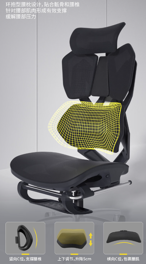 腰靠双"C"型环抱腰枕,升降调节,横向包裹工学自适应腰托固定腰托
