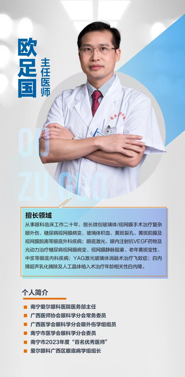 2019年5月,北海爱尔眼科医院糖尿病眼底专科正式成立,由广西省区眼底病学组组长欧足国主任医师亲自主刀手术。专科成立6年来,每周持续开展眼底手术,以精湛技术为患者守护光明,赢得北海市民广泛信赖。