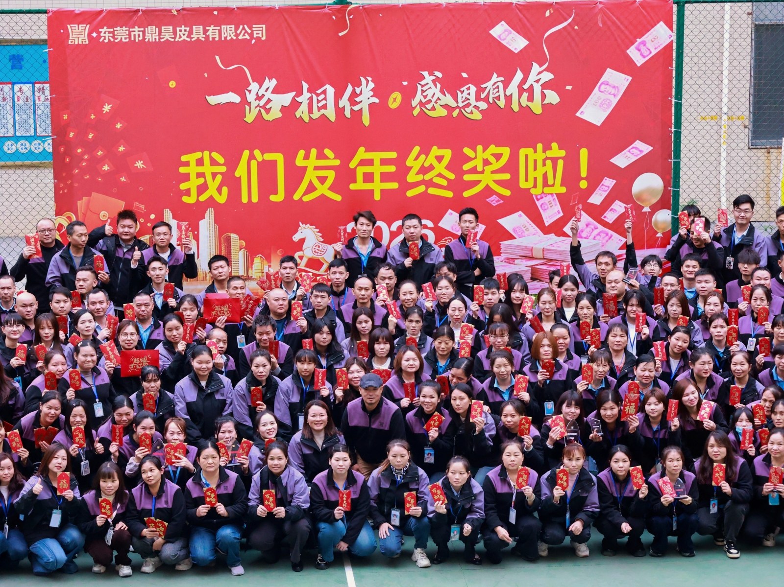 2026年[2月9日],东莞 —— 在行业寒冬的萧瑟中,一股暖流正在东莞市鼎昊皮具有限公司的厂区内涌动。近日,一则消息在鼎昊员工的朋友圈刷屏:尽管今年大环境不佳,公司业绩面临挑战,但老板毅然决定自掏腰包,补足缺口,为全体员工发放总额高达128万元的年终奖金。这一反常态的“逆行”之举,将鼎昊一直倡导的“家文化”诠释得淋漓尽致。