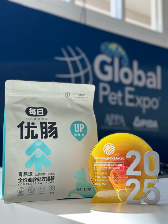 2025年3月在美国奥兰多宠展,子品牌「每日」摘得橙点生物技术奖