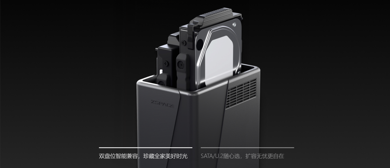 存储配置上,设备配备2个3.5英寸机械硬盘位+2个M.2 SSD硬盘位,最高可拓展至76TB超大容量,家庭多年积攒的照片视频、丰富影视资源、各类办公资料都能妥善收纳。M.2 SSD接口可组建高速存储池或用作缓存加速,显著提升数据传输效率,大文件拷贝、4K视频播放都能流畅不卡顿。同时SATA接口兼容U.2 SSD硬盘,方便用户复用闲置硬盘,最大化利用现有资源,节省使用成本。