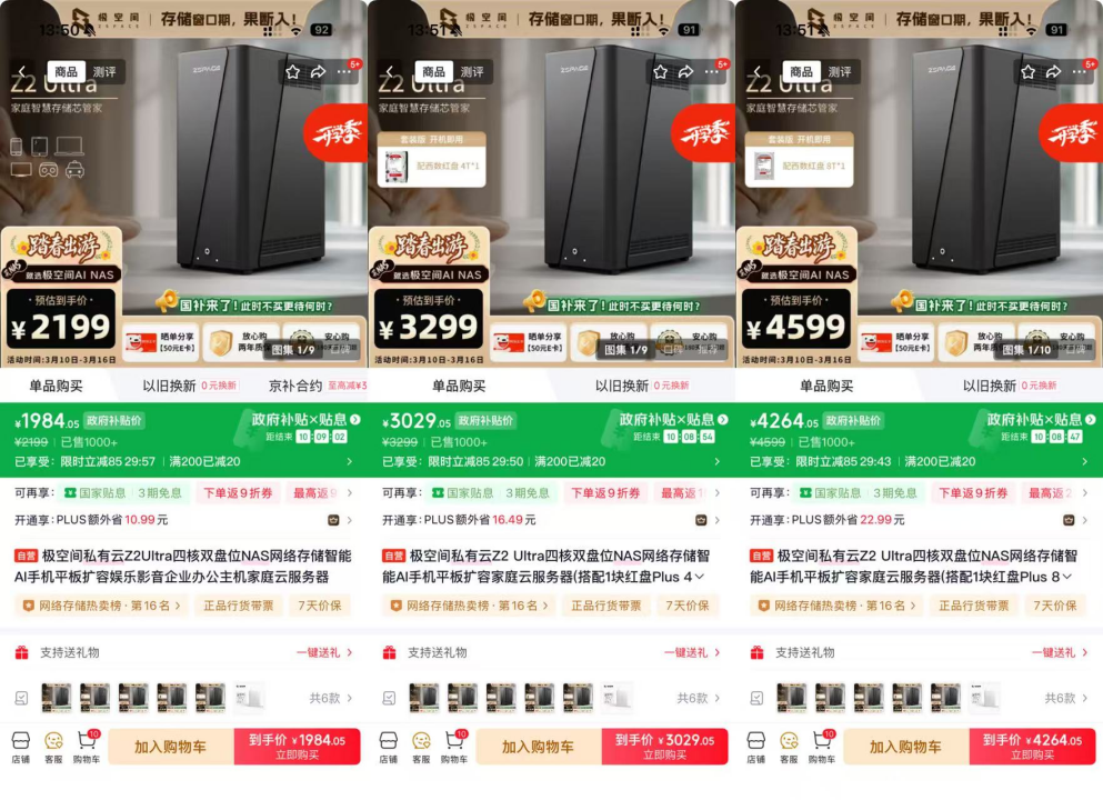 价格方面,Z2 Ultra精准匹配家庭用户预算,当前极空间积极参与国家补贴活动,单机及硬盘套餐均可享受叠加优惠,对比四盘位NAS产品,性价比优势突出。对于数据存储量适中、预算有限,或希望复用旧硬盘的用户来说,不用为多余盘位多花成本,就能体验高性能、大空间的专业级存储服务。