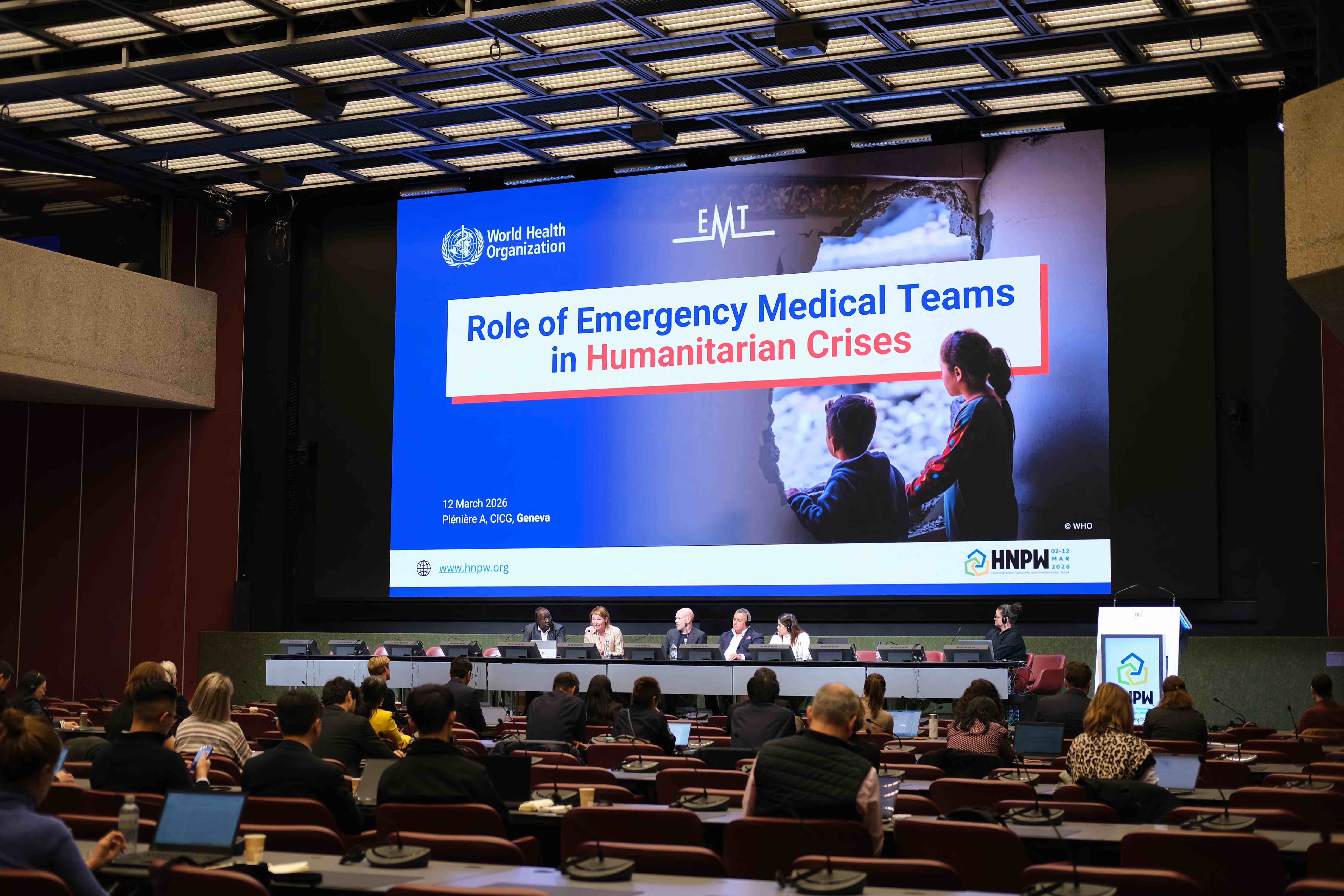2026年3月12日,瑞士日内瓦,一年一度的联合国人道网络与伙伴关系周(HNPW)在万国宫附近的国际会议中心闭幕。