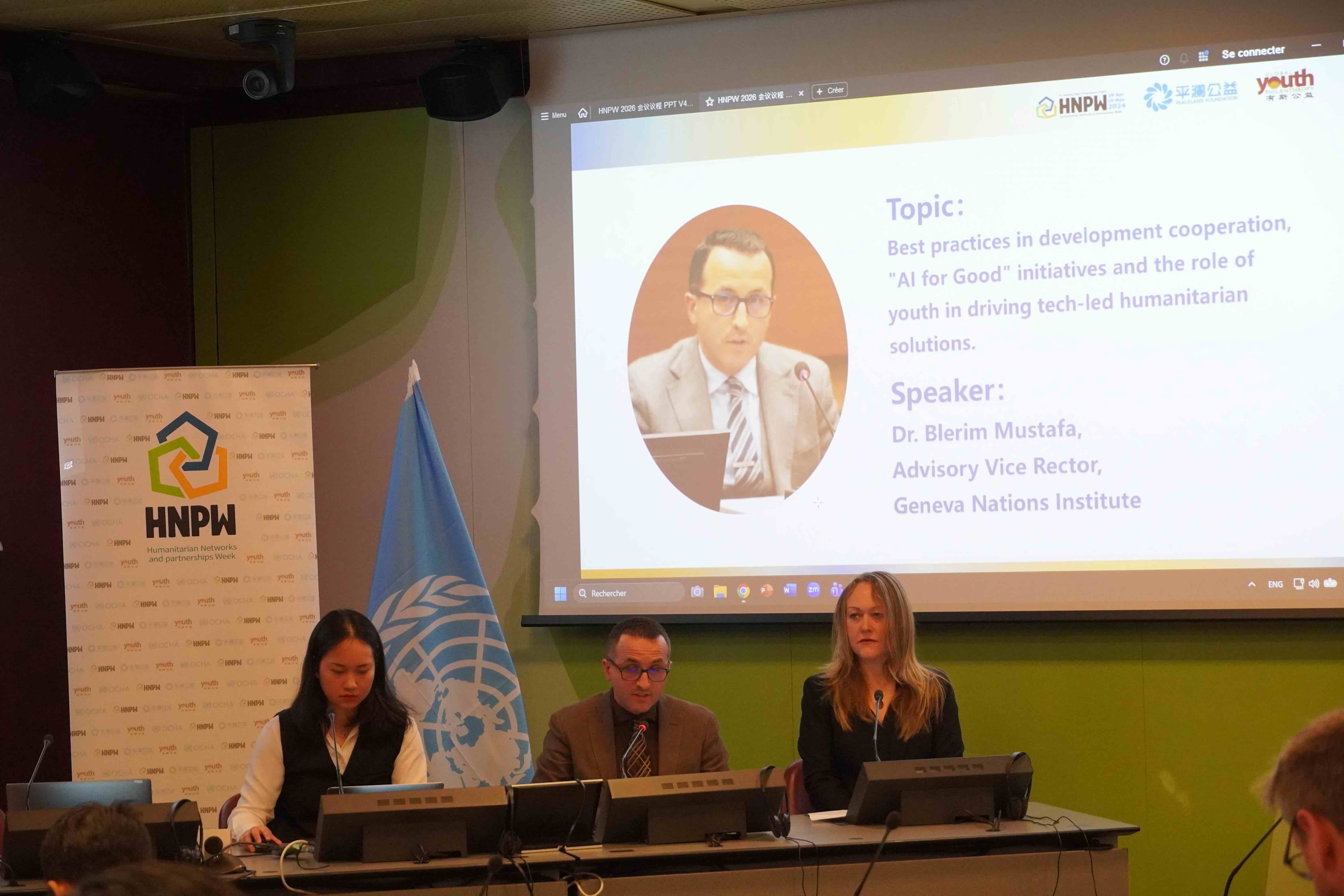 发展合作的新路径: 日内瓦国家学院副校长 Dr. Blerim Mustafa 则总结了“AI向善”在国际合作中的最佳实践,高度肯定了青年在技术引领的人道方案中的核心地位。