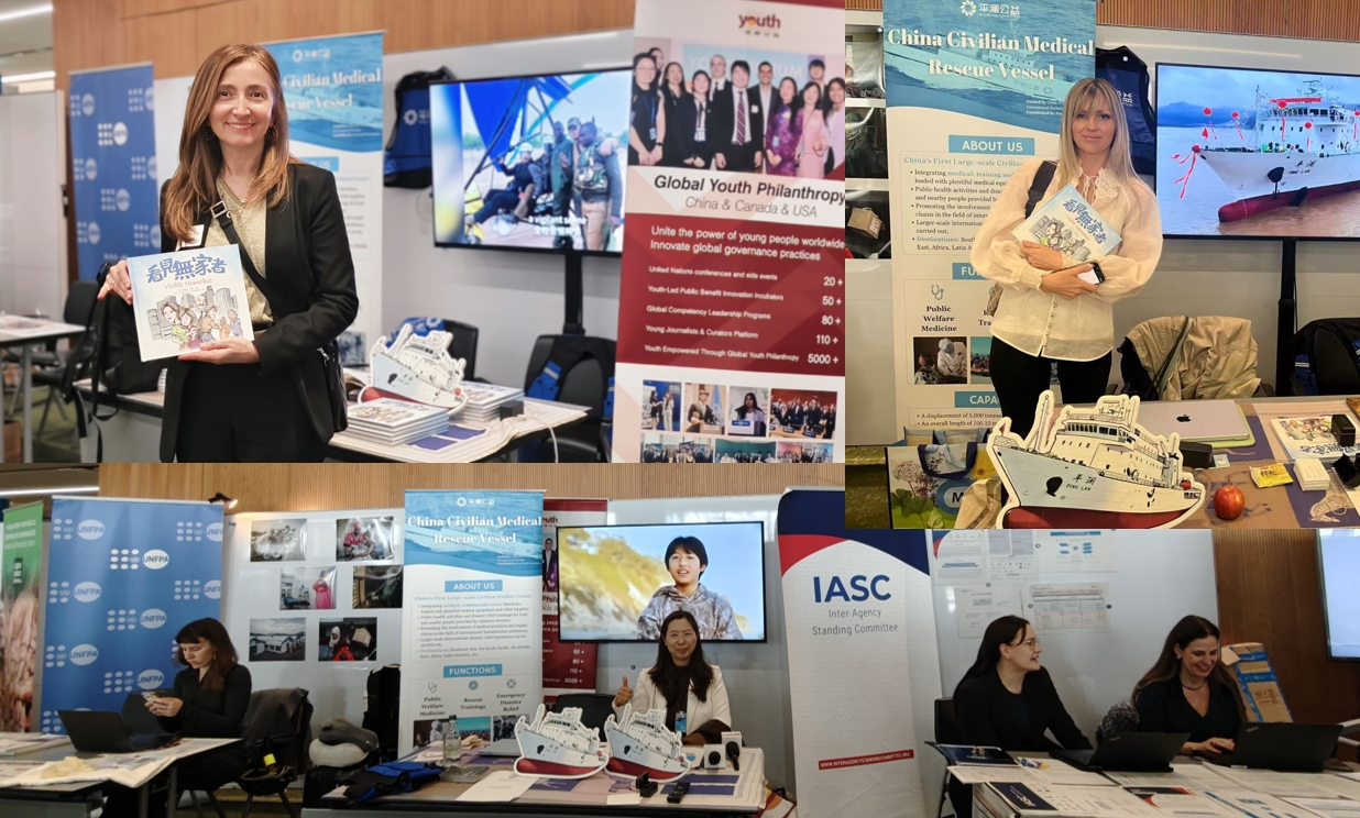色彩斑斓的艺术创作与严谨的科技探讨在此交织。许多国际专家和外交官纷纷在展区前驻足,凝神观赏,并不时与在场的青年代表交流。这些作品不仅展示了中国青年的创作才华,更向世界传递出一种跨越国界的共情力:人道主义不只是救援,更是关于“看见”与“守护”。