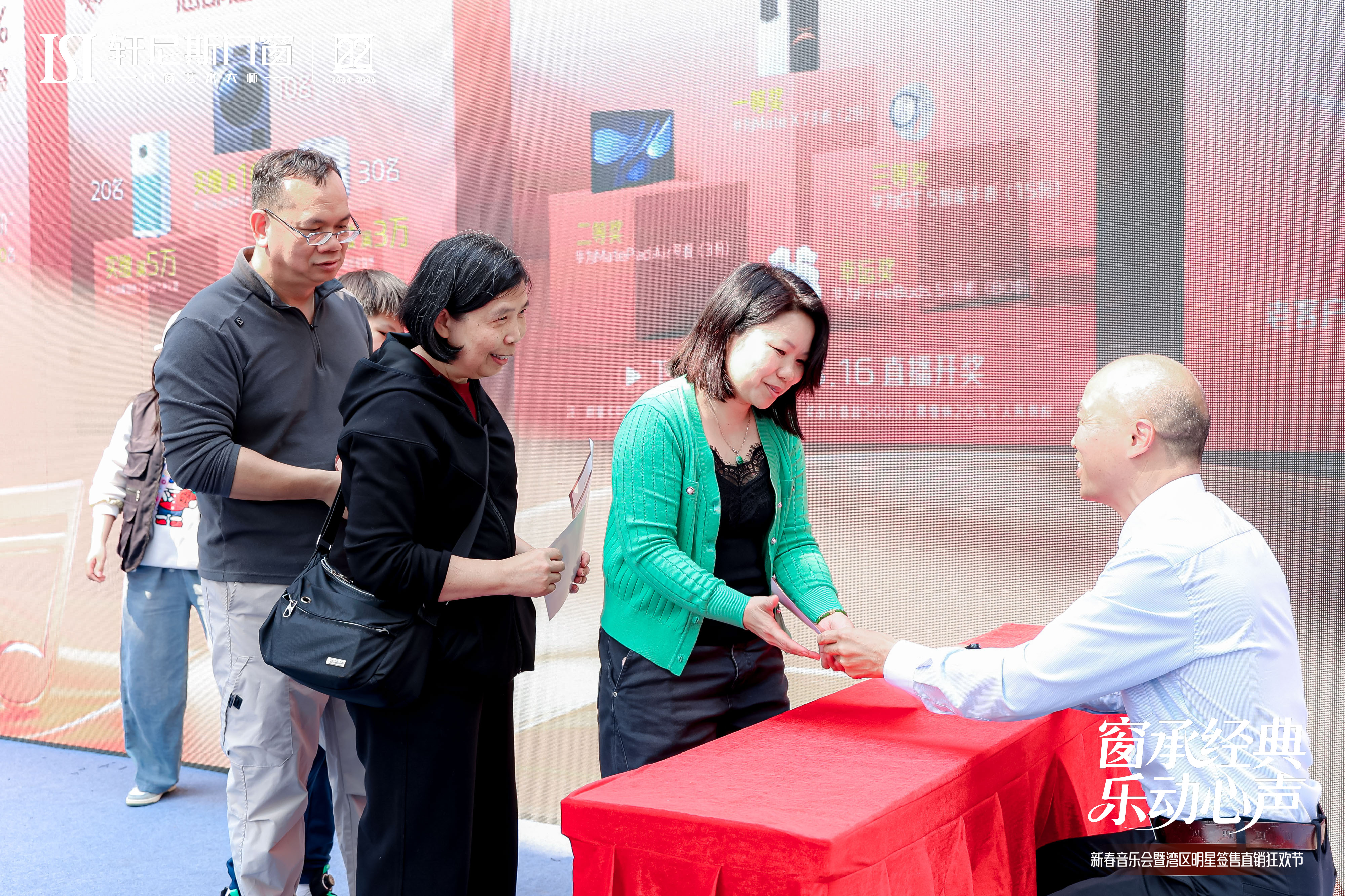 在音乐流淌、情感共鸣之余,轩尼斯门窗更以极具诚意的实际行动回馈广大消费者的长期信赖。活动现场特设的“总裁直签”环节成为焦点,轩尼斯集团副总裁余家优先生亲临坐镇,为客户提供专属尊享优惠。配合轩尼斯门窗推出的五大促销特权,包括99元抵1000元超值抵扣、前100名下单再减、实缴满额赠豪礼、抽取华为Mate X7以及老带新福利叠加等,诚意十足,引爆了现场的签约热潮。