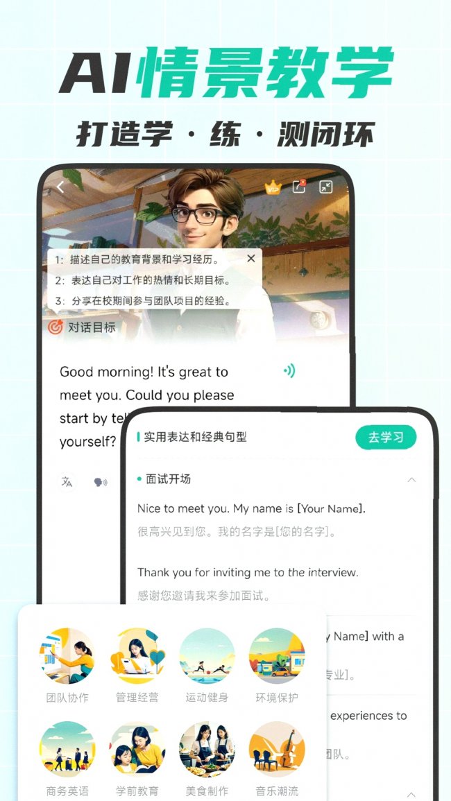扇贝口语的素材库很全,日常交流、商务英语、雅思托福的内容都有,课程设计是“跟读模仿+逐句精修”的模式,能帮你打磨基础发音,适合用来做基础的发音练习。但同样缺乏针对考研复试的专项内容,没有专业相关的训练素材,也没有模拟面试的功能,只能作为补充练习工具。