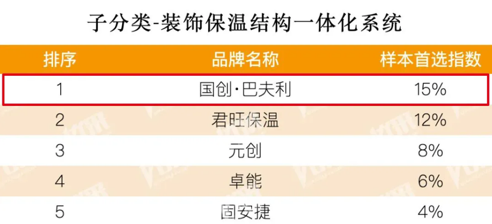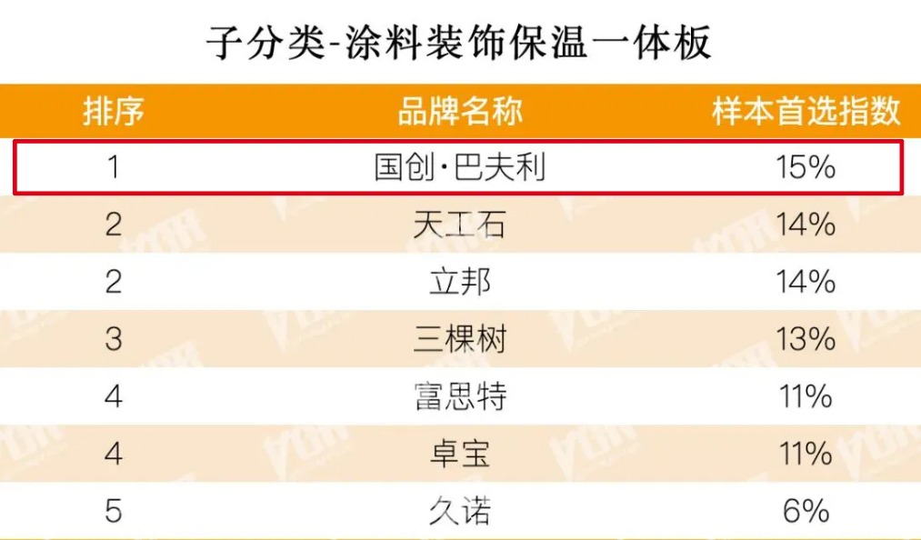 · 国创·巴夫利荣登涂料装饰保温一体板类榜首,连续五年排名第一,进一步巩固其在涂料装饰保温一体板材料与施工服务领域的双领军地位;