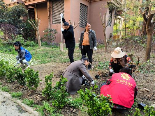 随着共识凝聚,环境提升行动有序推进。社区党委现场动员,党员骨干带头示范,居民志愿者积极响应,主动承担清理杂物、翻土栽植等工作。原本杂乱的出入口变得整洁有序,垃圾分类指引逐步规范,安全宣传融入公共空间,绿化薄弱区域得到重点提升。曾经黄土裸露、植被稀疏的区域焕发新生,小区绿化景观呈现出层次分明、生机盎然的崭新面貌。
