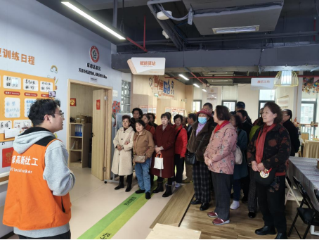 活动现场,参访队伍在点位工作人员的带领下,实地参观了芳草街关爱援助中心的功能分区与服务阵地,全面了解点位在特殊群体帮扶、社群培育、阵地规范化运营等领域的成熟工作模式,直观学习标杆点位的先进服务理念、精细化管理方式与特色服务举措。