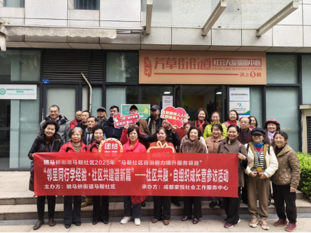 为深入推进基层治理精细化提质增效,进一步夯实社区基层治理人才队伍建设,拓宽社区治理工作思路,提升居民骨干、自组织队伍的服务能力与规范化运营水平,2026年3月19日,驷马桥街道马鞍社区联合成都家悦社会工作服务中心,组织社区居民骨干、自组织队伍代表共35人,前往芳草街关爱援助中心开展“邻里同行学经验・社区共建谱新篇”社区共融・自组织成长营参访学习活动。