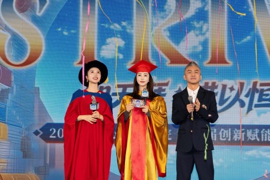 结业典礼在温情与荣耀中举行。郑董动情分享,“人生需要跟着成功者的脚步,去学习,去成长、去探索,去成就一番伟大,成就心追美好的高光年华。”她以“智者不惑,勇者不惧”勉励全员,在变局中保持清醒与勇气。丁董则重申人才培养的以“笃定前行,向阳而生”寄语未来,掷地有声地指出:“对员工认知的投资,就是企业对未来的投资。”