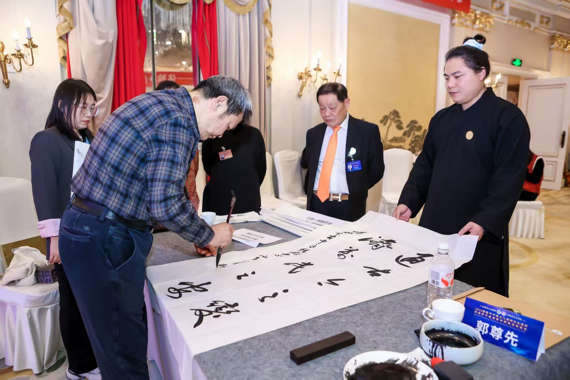 欧阳明广表示:“郭将军这幅字,是勉励,更是把标准立在了这里。‘通古今之变’是功夫,‘济万民之安’是落点。我们定当以此为训,勤求古训,博采众长,不负将军墨宝,不负患者性命相托。”