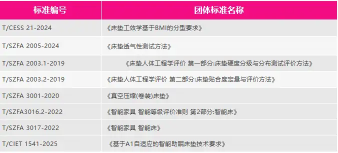 作为主起草单位,中深爱的参与了多项国家标准、团体标准制定,促进中国家具行业的健康发展。2025年,在智能床垫这一核心领域,由深圳中深爱的寝具科技有限公司作为主起草单位参与制定的T/CIET 1541-2025《基于AI自适应的智能助眠床垫技术要求》团体标准发布,