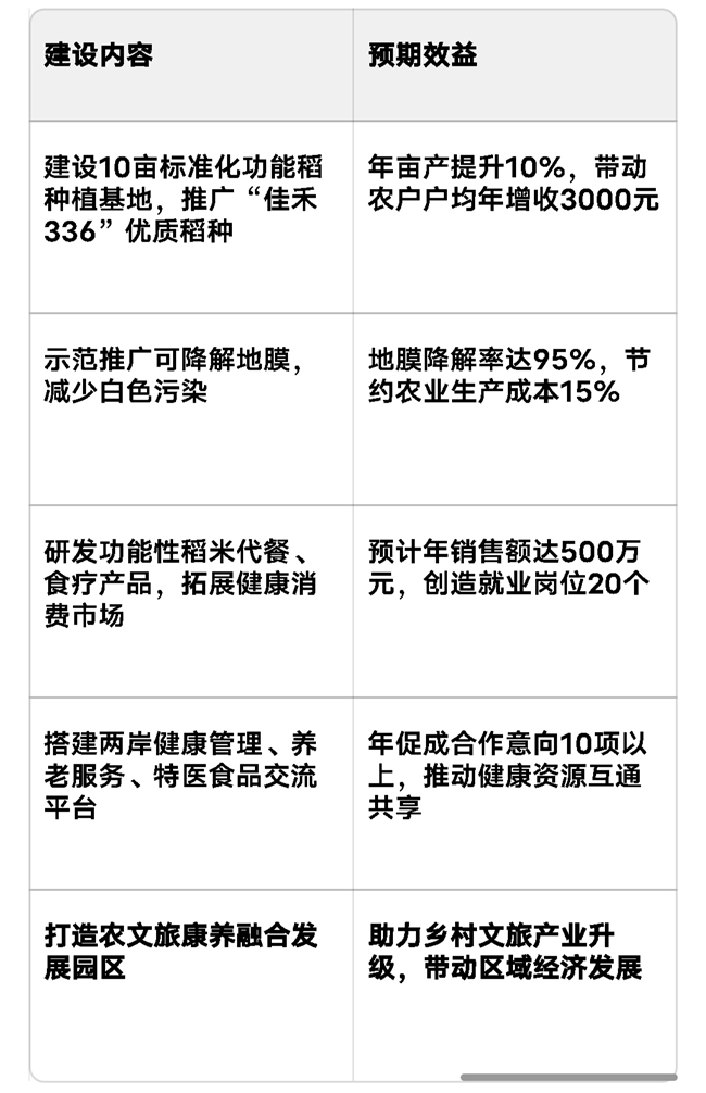 活动现场,“336诱导水稻示范工程”“竹纤维全生物降解水稻地膜应用示范”及福建上杭县古田镇卿马文旅产业园项目同步签约落地。项目将在江西南昌或福建上杭县古田镇建设10亩或200亩标准化家庭农场与功能稻种植基地,推动优质功能稻规模化种植与绿色生产技术普及,预计实现年亩产提升10%,带动农户户均年增收3000元以上。