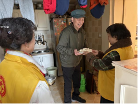 饺子包好后,工作人员迅速将饺子分装好,仔细做好素食、普通口味的标记,随后分组奔赴社区高龄、独居、空巢及困难老人家中。每到一户,工作人员都亲手将饺子送到老人手中,与老人亲切交谈,细心询问他们的身体状况和生活需求,耐心倾听老人的心声,叮嘱老人注意身体,一句句暖心的话语、一份份热腾腾的饺子,让老人们真切感受到社区的关怀与邻里的温情。