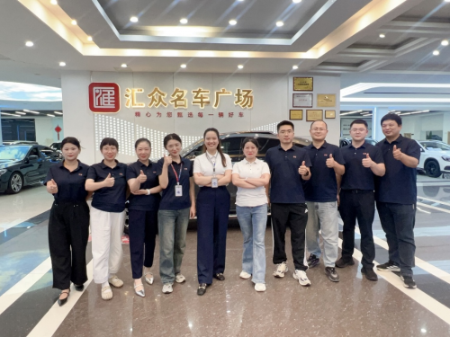 上图:易鑫二手车金融经理朱平丽(右五)和其团队