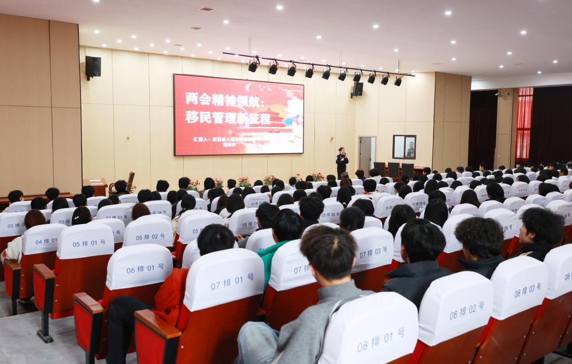 专题宣讲,筑牢思想理论“压舱石”。3月20日,南昌边检站执勤二队党支部组织宣讲员进企业,面向江西航空有限公司员工30余人,细致宣讲了全国两会召开的背景、意义、主要内容、主要精神等方面内容,讲清国家发展红利与移民管理服务实效,引导全体党员准确把握新时代对外开放的新要求,进一步增强守好国门、服务发展的政治自觉。为推动两会精神在更广泛的青少年学子心中扎根,3月19日,宣讲员进校园,结合国门文化,讲述了国家移民管理局的职责使命、奉献担当和感人故事,将“大道理”转化为“小故事”,用通俗易懂的语言引导青少年当好梦想家与实干家,把个人理想融入国家蓝图。宣讲现场互动频频,气氛热烈,在青少年学子心中播下了奋进的种子。