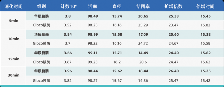 Trypure™酶解效率高,细胞活率、扩增倍数等关键指标表现优异,批次间一致性强,非常适合规模化的细胞培养生产。