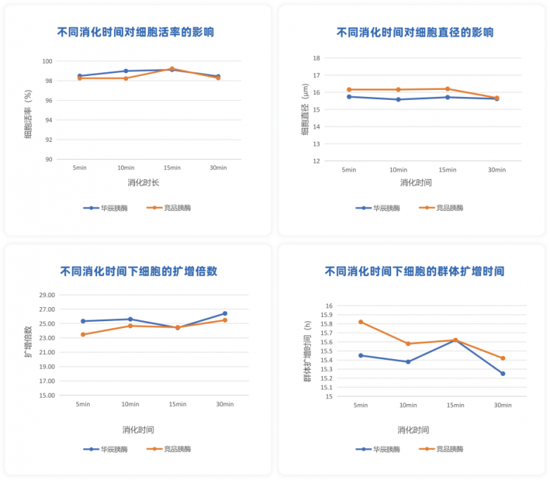 即使消化时间延长至30分钟(过度消化),使用Trypure™的细胞活率仍保持在98%以上,远超行业标准。