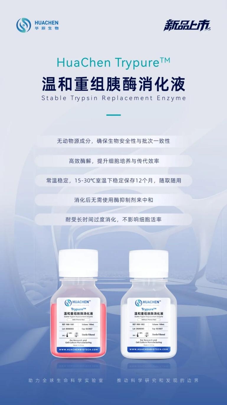 华辰生物表示Trypure™的推出是公司在细胞治疗上游核心原料领域的又一重要布局。