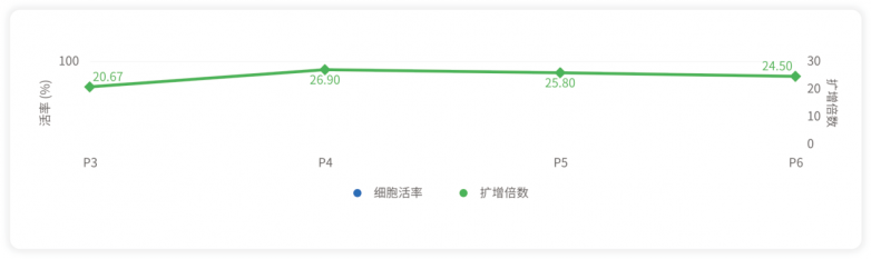在P3到P6代的连续传代实验中,使用Trypure™消化后的细胞活率始终保持在98%以上,扩增倍数也维持在较高水平,没有出现明显下降。这表明Trypure™非常适合疫苗生产、干细胞培养等需要规模化、长期细胞培养的应用场景。
