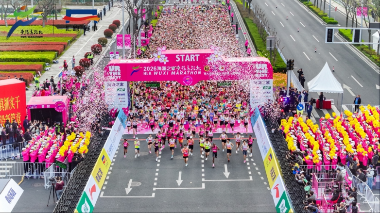 3月22日,2026海澜之家无锡马拉松在太湖大道激情开跑。作为赛事连续第三年独家冠名商,海澜之家携手35000名跑者,在烂漫的樱花赛道上共同呈现了一场精彩纷呈的体育盛会。