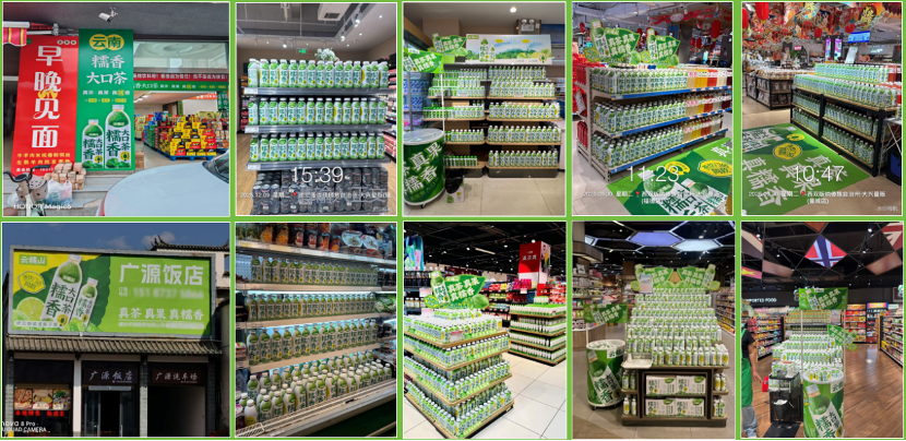 在短短半年时间内,云糯山已成功入驻根据地市场“云南省”内多种不同类型的渠道,实现了对云南90%以上饮料销售渠道类型的广泛覆盖,销量破20万件。深度渗透云南快消品核心渠道系统:美宜佳、之佳便利、万逸之家等主流CVS连锁便利店体系;覆盖大兴超市、金方超市、天生祥超市等本地头部连锁商超;TOP5的单一县/区,月销量均达2000件以上,系列市场表现不仅超越新品标准,更达到爆品水平。