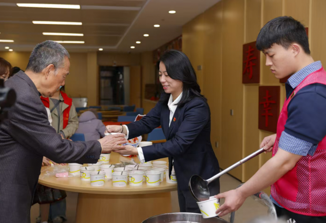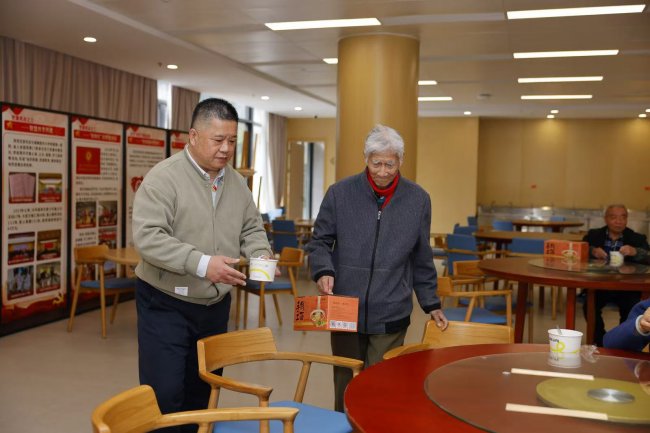 游园之余,工作人员为长者们送上精心熬制的拗九粥,香甜软糯的粥品饱含糯米、红枣、桂圆的醇厚滋味,更满载着对长者健康长寿的美好祝愿。老人们围坐品粥、闲话家常,眉眼间尽是温暖,传统节日的温情在欢声笑语中静静流淌。
