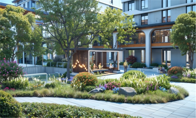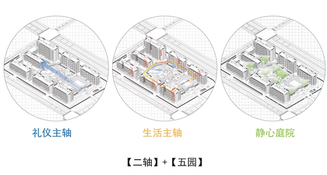 据了解,该项目整体规划以“两轴五园”为骨架,礼仪主轴昭示归家的尊贵,生活轴线组织起日常的舒缓节奏。外围环形车行高效到达,内侧人车分流的人行庭院安静有序;二层风雨连廊全区贯通,既保证四季全天候便捷通达,也成为AGV智慧物流的高效走廊,日常补给与护理支持悄然、准时、少打扰。街巷式的邻里空间重塑熟人温度,长者在转角相遇、廊下小坐间,重拾社区的温情与互动。