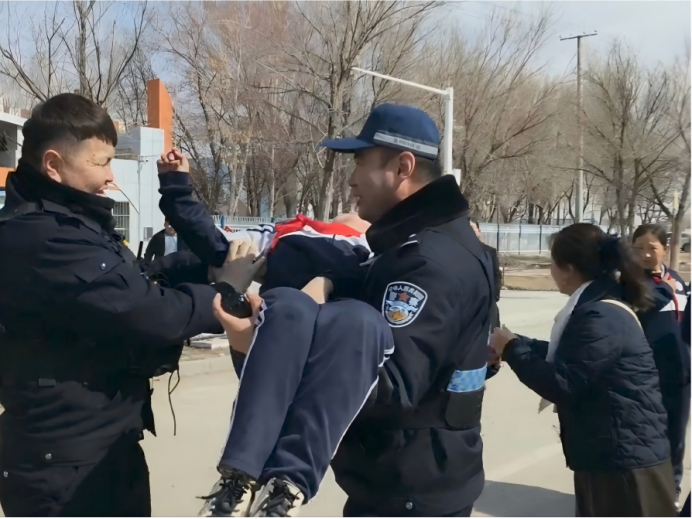 3月23日13时50分,富蕴县恰库尔图镇中小学午休放学,校门口学生人流密集。富蕴县公安局恰库尔图镇派出所护学岗民辅警在日常执勤中,全力维护校园周边秩序,保障学生出行安全。就在此时,一名学生突然身体不适,毫无征兆地晕倒在地,情况十分紧急。