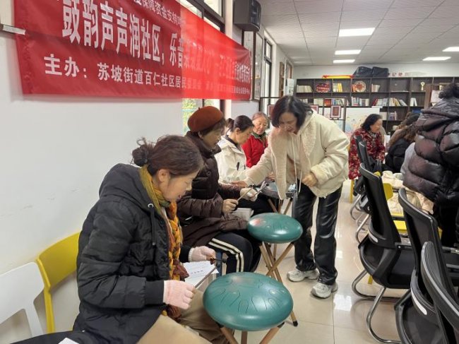 为丰富居民精神文化生活、搭建邻里交流平台,2026 年 1 月,苏百仁社区推出 “鼓韵声声润社区,乐音袅袅聚人心” 空灵鼓体验课。课程伊始,专业老师先带大家初识空灵鼓 —— 讲解这种乐器的起源与构造,它音色空灵澄澈,兼具传统韵味与现代美感,无需复杂乐理基础即可入门,十分适合社区居民学习。