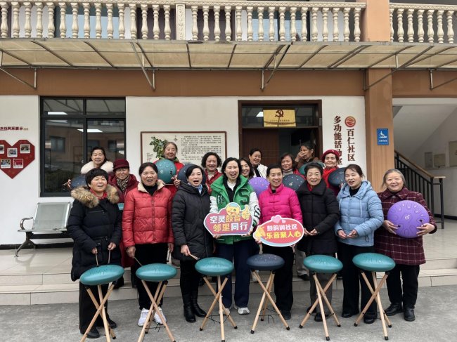 “咚咚咚……” 悠扬婉转的鼓音从百仁社区党群服务中心活动室传出,社区居民手持鼓槌,跟着旋律整齐敲击,空灵鼓独特的温润音色在空气中流转,勾勒出邻里围坐、其乐融融的温馨画卷。这是百仁社区 “韵聚邻里” 空灵鼓队的日常排练场景,而这支充满活力的队伍,正是社区文化自组织培育的生动缩影。