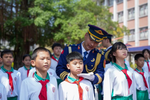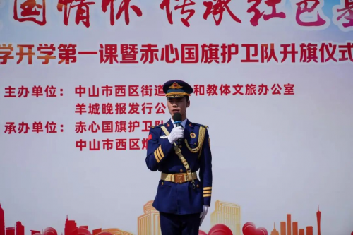 3月16日上午,中山西区烟洲小学迎来了一场特别的升旗仪式——由西区街道宣传和教体文旅办公室与羊城晚报发行公司联合主办的“开学第一课暨赤心国旗护卫队升旗仪式进校园”活动在此隆重举行。