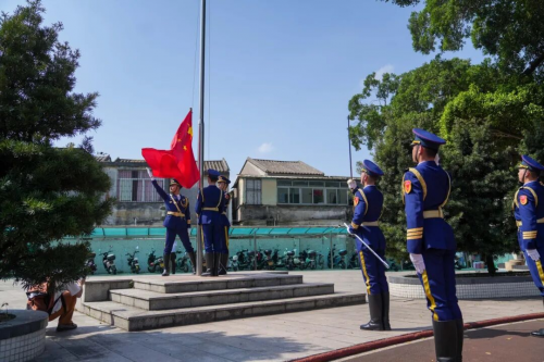 当天10时30分,铿锵的步伐划破宁静。赤心国旗护卫队肩擎国旗,正步而来。全体肃立,国歌嘹亮,五星红旗在烟洲小学上空冉冉升起。
