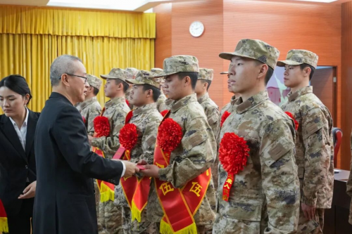 谢军杰、王远胜为新兵家属佩戴绶带、红花,并向家属们致以衷心感谢。感谢他们响应国家号召,送子参军、支持国防,为强军事业输送了优秀人才。