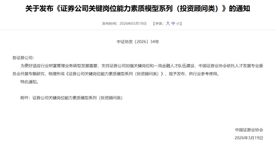 近日,《中华人民共和国金融法(草案)》公布并向社会公开征求意见,标志着金融监管的法治化、规范化迈出重要一步。与此同时,中国证券业协会发布《证券公司关键岗位能力素质模型系列(投资顾问类)》(下称《模型》),系统性地为证券行业投顾发展、人才建设提供了科学化、系统化的权威指引。