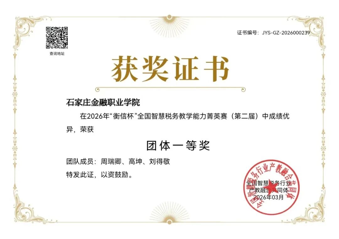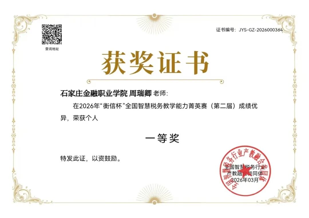 备赛期间,我校教师主动利用寒假时间积极备战,围绕竞赛模块反复打磨,严格对照评分标准,着力追求计算精准、流程规范。此次参赛既是对我校教师智慧税务教学能力的一次全面检验,也为学校进一步深化财税数字化教学改革、推动产教融合提供了实践支撑。我校将持续坚持“以赛促教、以赛促学”,组织获奖教师开展经验交流与分享,将竞赛成果有效转化为教学资源,不断优化课程体系与实训环节,切实提升学生的财税实操能力与数字素养,努力培养更多高素质的大数据会计与智慧税务应用型人才。