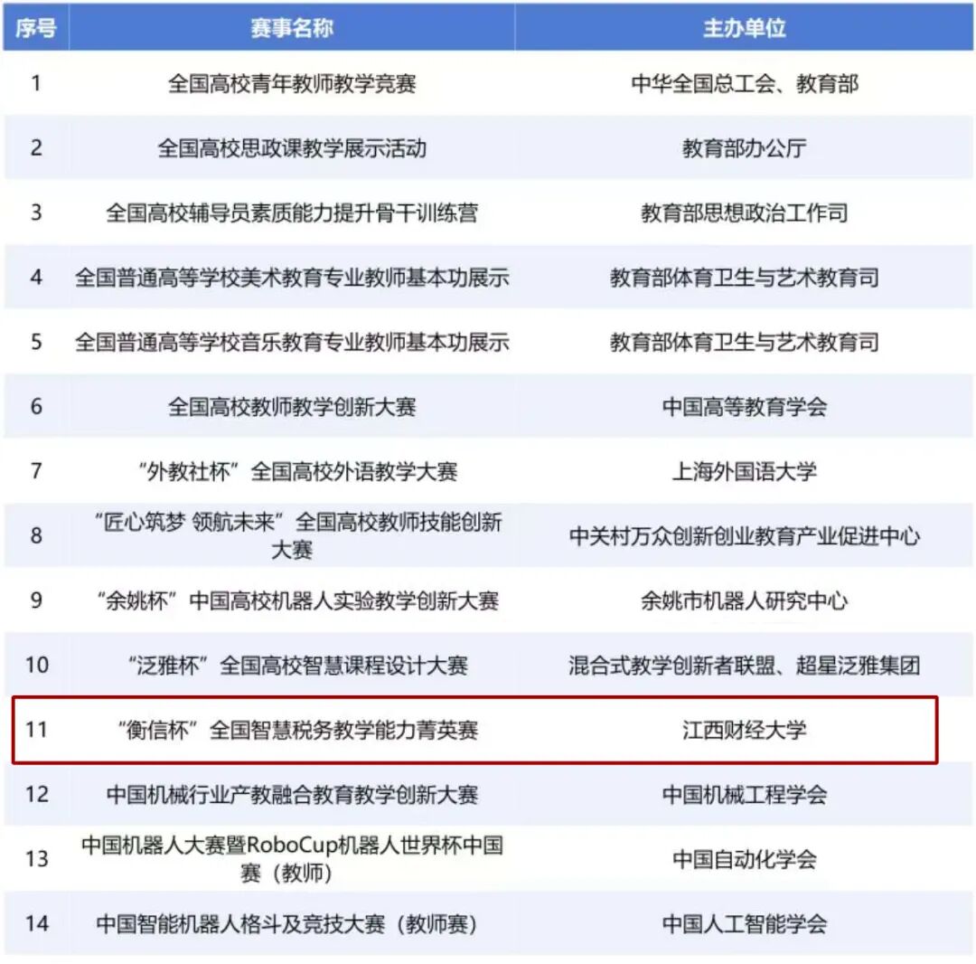 近日,第二届“衡信杯”全国智慧税务教学能力菁英赛圆满落幕《全国普通高校教师教学竞赛分析报告(2012-2025年)》在个人总分奖中,我校...